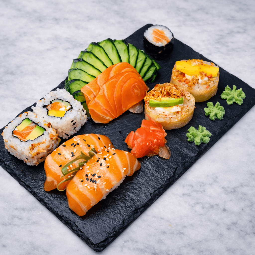 | Sashimi Salmao 2 Uni, Nigiri Salmao 2, Uramaki California 2, Hosomaki Salmao 1, Hot Roll Primaveira 2 |