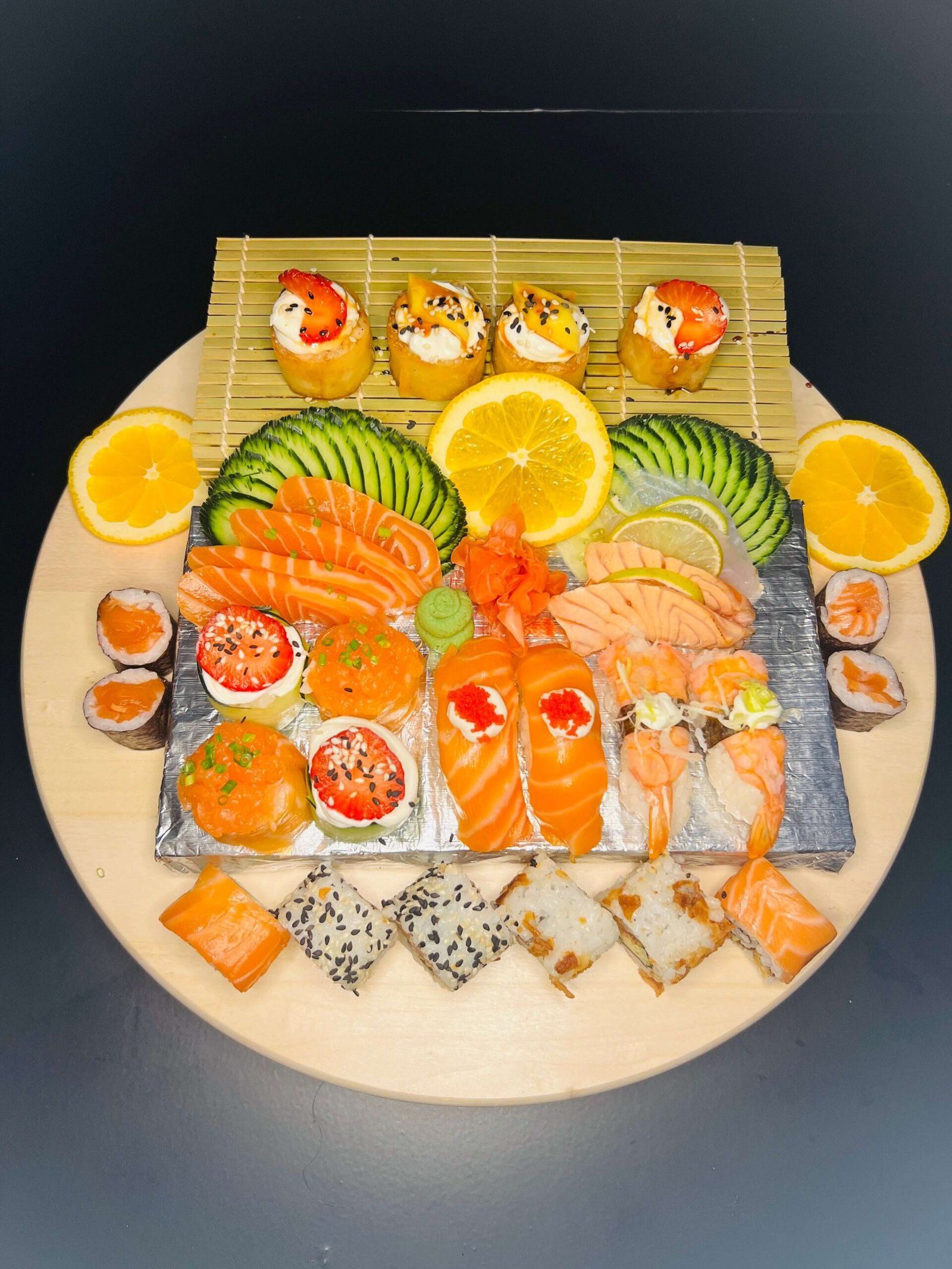 | Sashimi Salmon 4 Uni Sashimi Salmon Tataki 2 Uni Sashimi white fish 2 uni Uramaki Mix 6 Uni Gunkan Salmon 2 Uni Nigiri Salmon 2 uni Hosomaki Mix 4 Uni Hot Special Roll 4 Uni Nigiri Camarao 2 Uni Gunkan Frita 2 Uni |