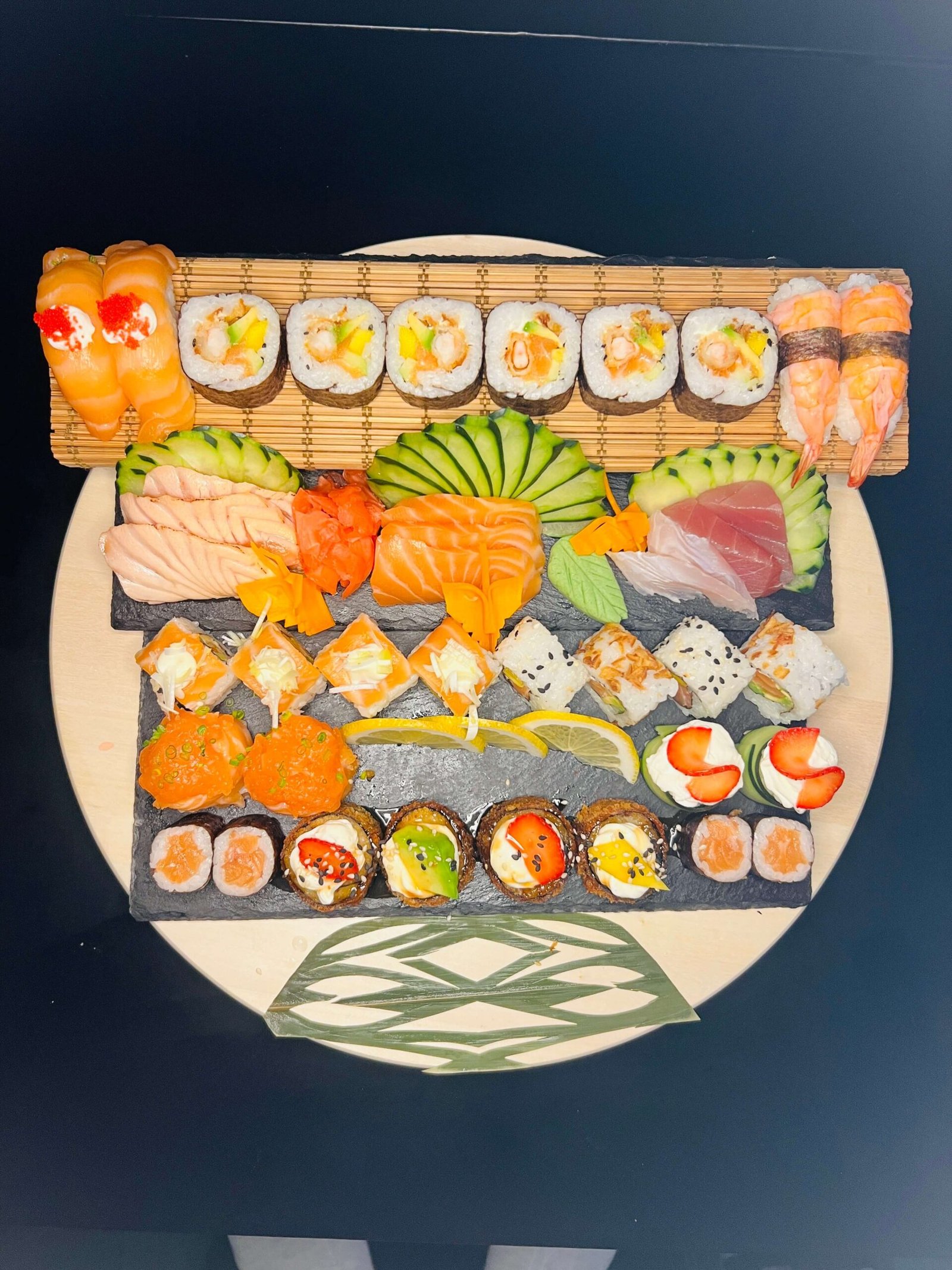 | Sashimi Salmao Tataki 3 Uni Sashimi Salmon fresh 3 Uni Special Maki 6 Uni Uramaki camarao Roll 4 Uni Uramaki Salmon Philladelphia 4 Uni Gunkan Salmon 2 uni Gunkan Frita Cream Cheese 2 uni Nigiri Camarao 2 Uni Nigiri Salmon 2 Uni Hot Roll 4 Uni Hosomaki Mix 4 Uni Sashimi Atum 2 Uni Sashimi White fish 2 Uni |